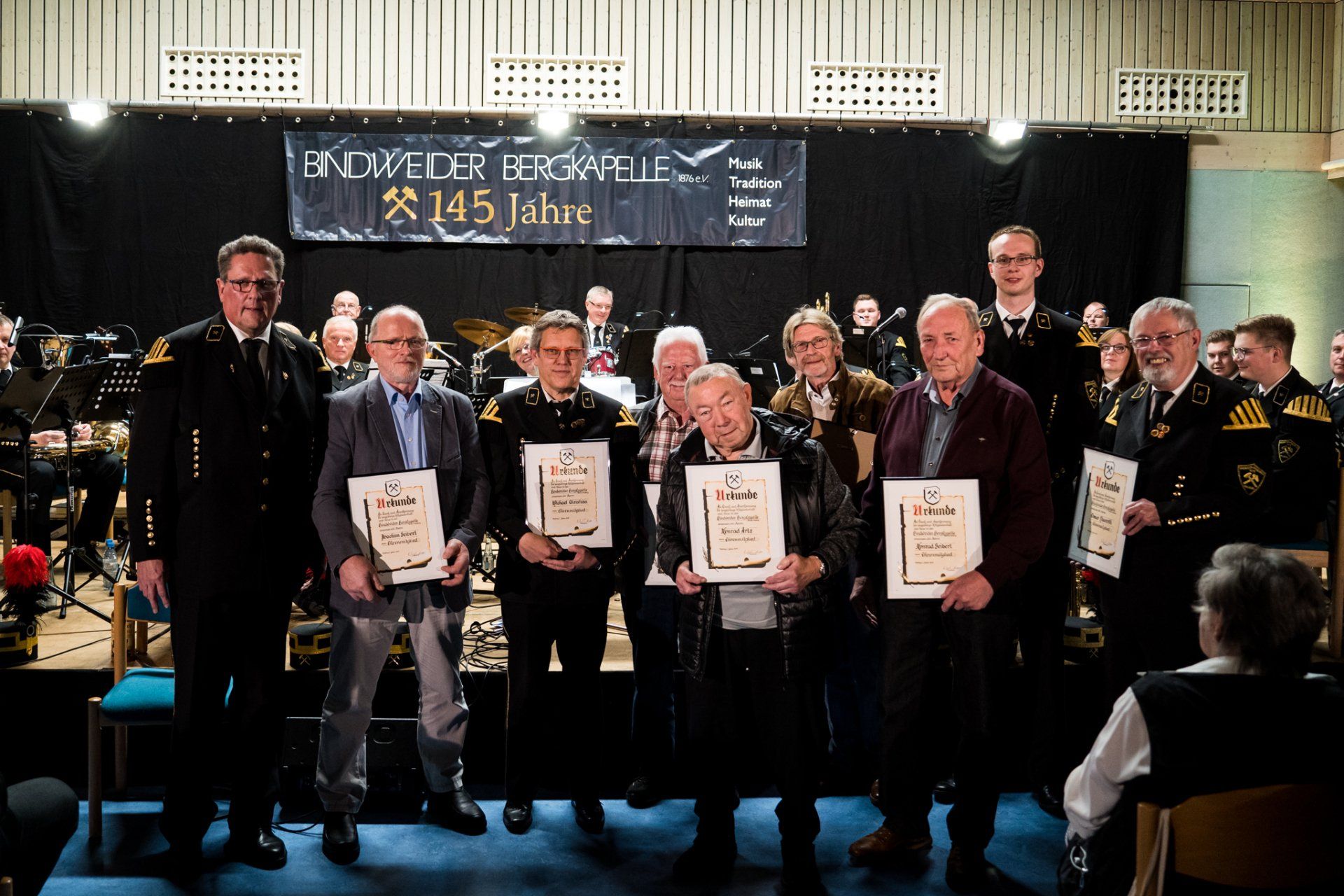 Unter den Gästen begrüßte der 1. Vorsitzende Bernhard Vogel eine Abordnung der „Lustigen Eifelländer Musikanten“, einem Verein, dem man bereits seit mehreren Jahrzehnten freundschaftlich begegnet und u.a. bei Karnevalszügen in Köln und Malberg gegenseitig aushilft. Leider war auch hier die Flutkatastrophe im Ahrtal nicht spurlos vorübergegangen. Als im Rahmen des Starkregens mehr als 200 Liter Niederschlagswasser pro Quadratmeter herunter kamen, wurde das Haus eines Mitgliedes der „Lustigen Eifelländer“ überflutet. Im Keller befanden sich Uniformen, Kostüme und Instrumente des Vereins. „Hier wollen wir helfen“, so Vogel.