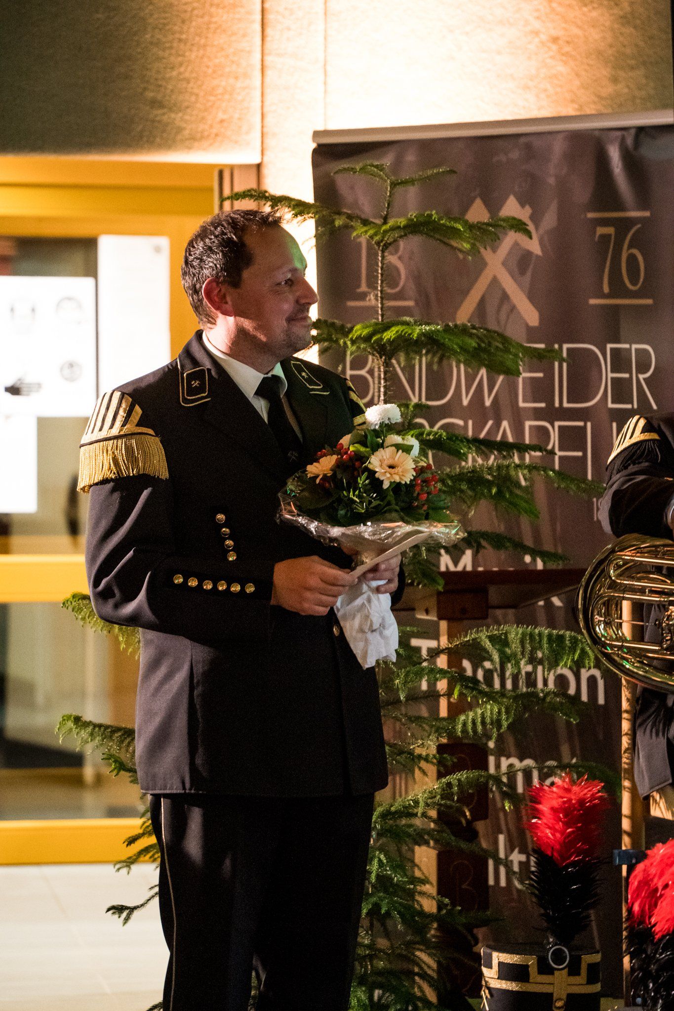 Als erster Solist des Abends trat Marlon Weib (19) in Erscheinung. Der junge Flügelhornist, der seit kurzem beim Heeresmusikkorps Koblenz aktiv ist, zeigte bei der Flügelhorn-Serenade von Ernst Mosch sein können und Gefühl auf dem Instrument.