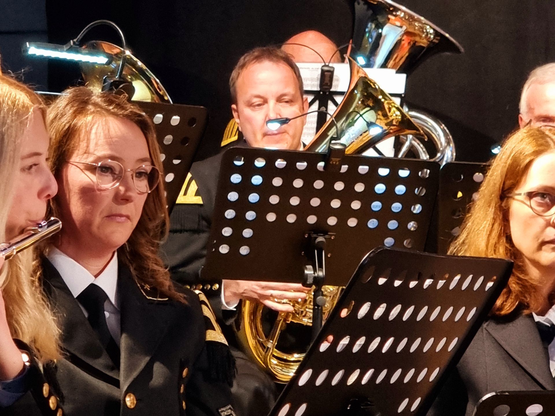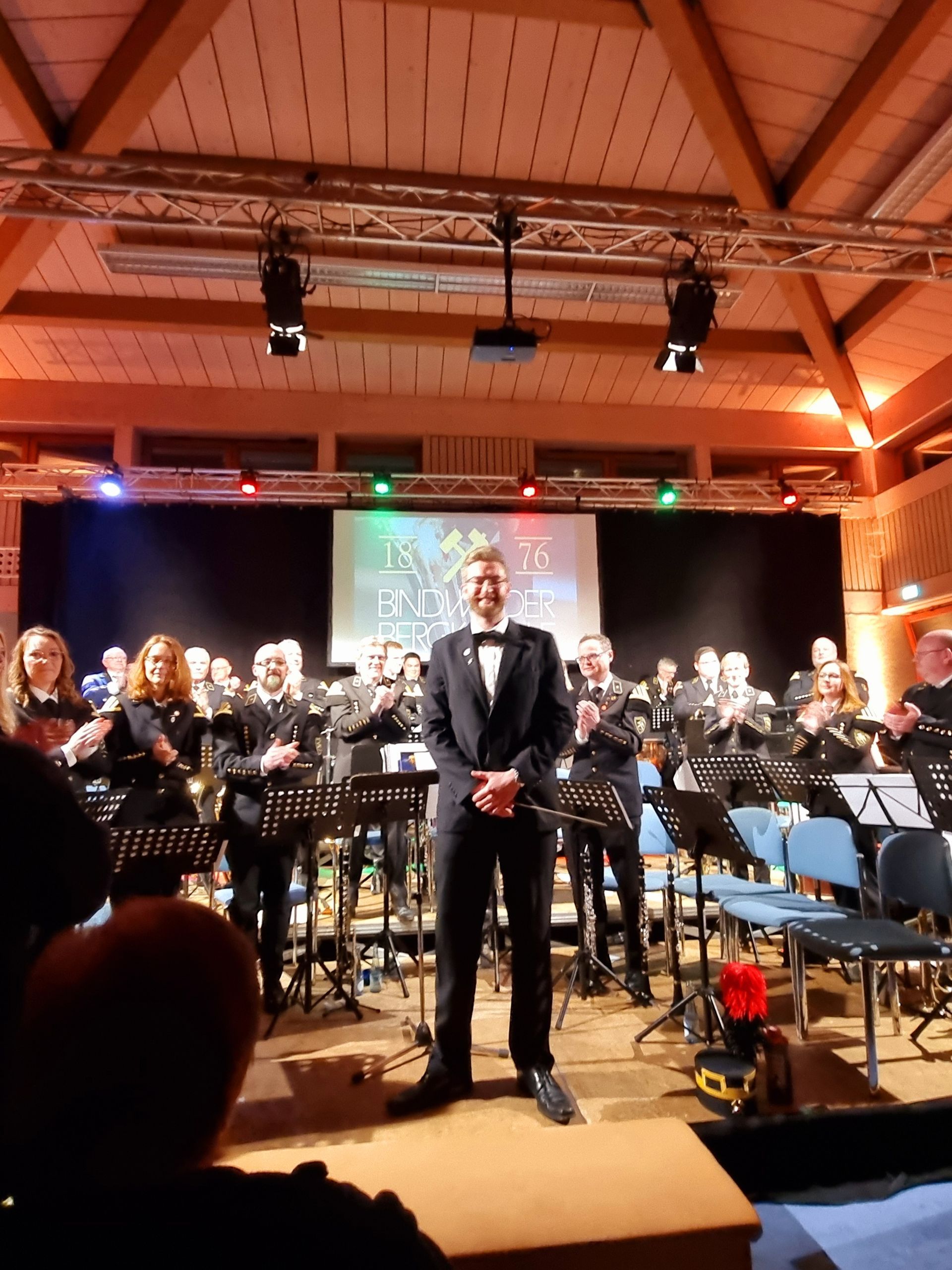 In der zweiten Hälfte hatte dann nicht nur musikalisch „Eine letzte Runde“ begonnen. Nach diesem Stück übergab Sven Hellinghausen symbolisch den Taktstock an seinen Freund Christian Schmidt. Dieser hatte durch Hellinghausen davon erfahren, dass die Bindweider Bergkapelle einen Nachfolger als musikalischen Leiter suchte. In mehreren Probedirigaten hatten sich Orchester und Schmidt einander vorgestellt und angefreundet. Fortan wurde geprobt und das Konzert im März für die Stabübergabe anvisiert. Schmidt stammt aus dem Siegerland, spielt seit seiner frühen Kindheit selbst Blasinstrumente und hat auch schon Orchester dirigiert. Für sein erstes Konzert mit der Bindweider Bergkapelle suchte er Stücke wie Ross Roy, Kilkenny Rhapsody und Kometenflug aus.