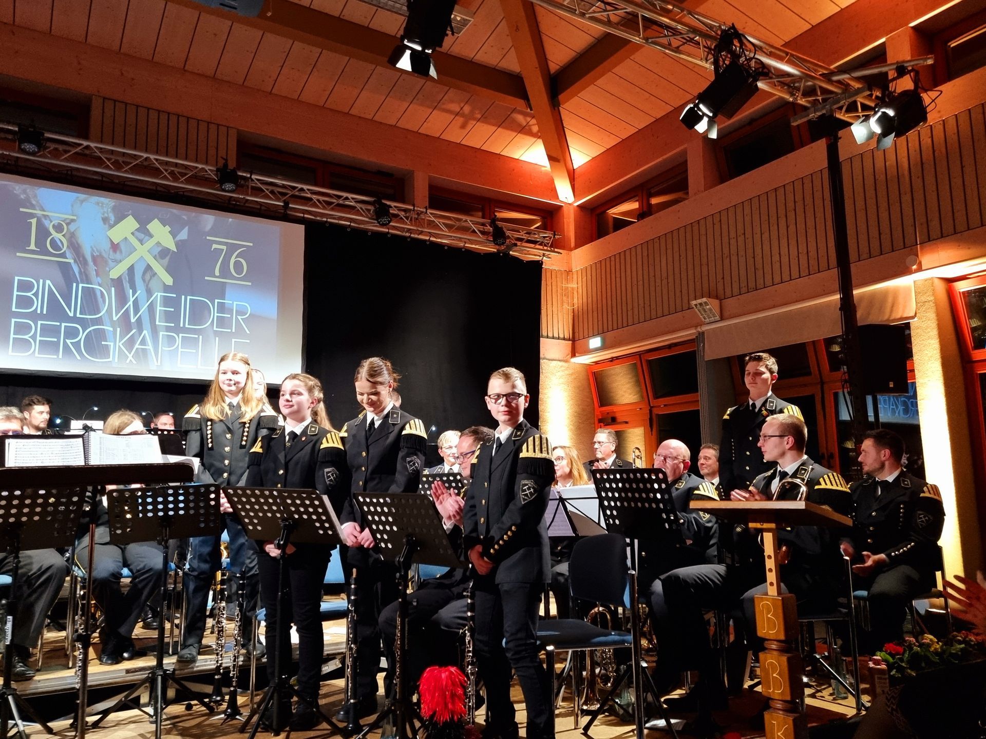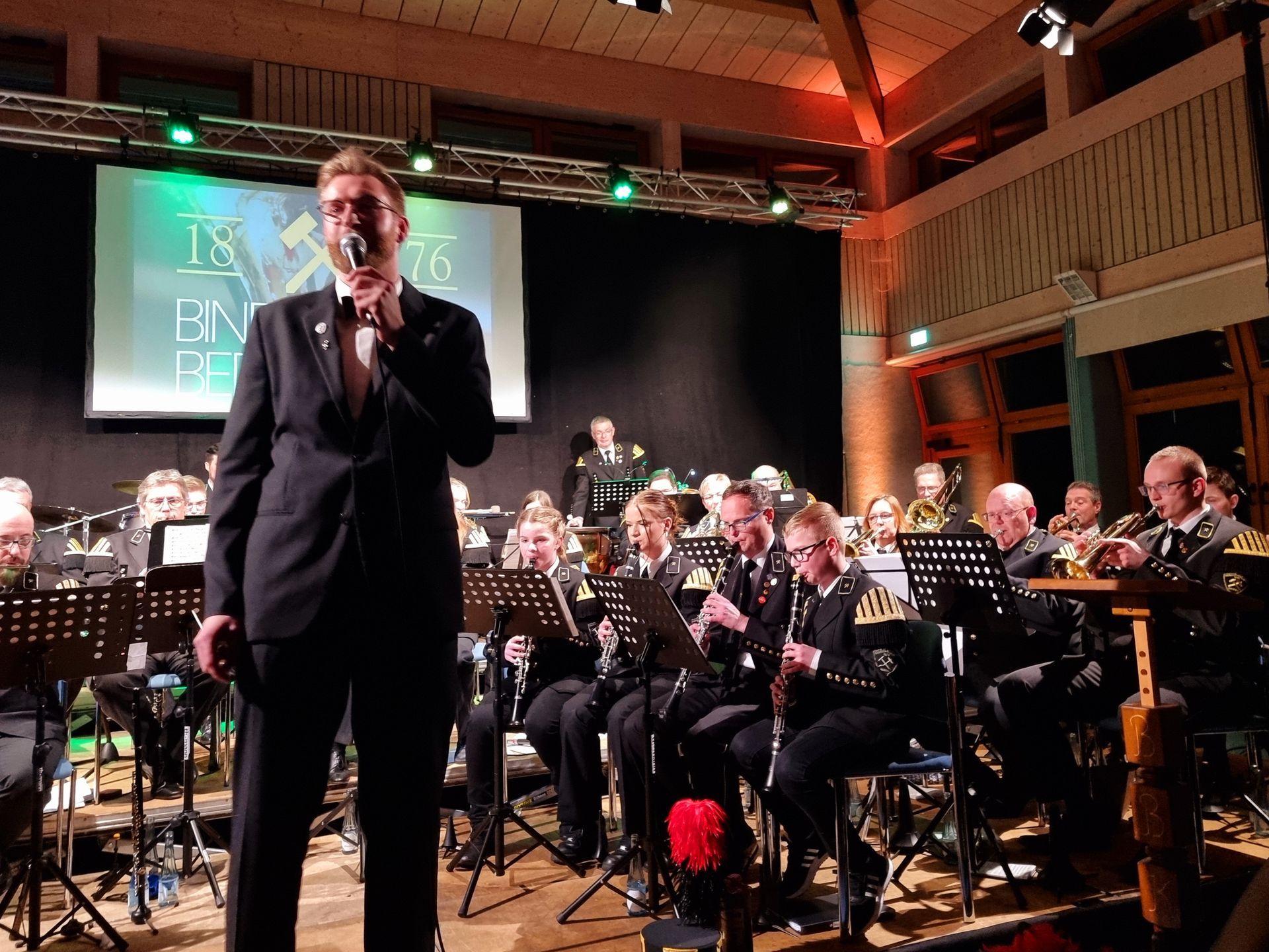 Auch das Jugendorchester der Bindweider Bergkapelle steht seit Anfang Januar 2024 unter der Leitung von Christian Schmidt. Daher war es ihm ein großes Anliegen, dass der Nachwuchs gemeinsam mit dem großen Orchester auf der Bühne musizieren konnte. Dies bildete das große Finale eines gelungenen Konzerts. Die Stücke Ghostbusters und I will follow him machten nicht nur dem Nachwuchs Spaß. Schmidts Gesangeinlage beim Stück Nessaja begeisterte das Publikum vollends.